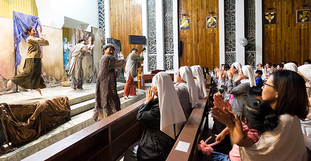 전국 공연을 통해 교회 내 창작공연 문화를 선도한 가톨릭신문 창간 90주년 기념 창작뮤지컬 ‘사도 베드로’가 ‘찾아가는 공연’을 통해 지역 성당에서 또 한 번 감동을 이어갔다. 뮤지컬은 지역 복음화를 활성화하고 주민과 함께 하는 축제의 장을 선사했다.