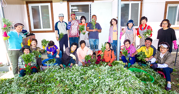 6월 14일 오전 신자들이 옛 오천공소로 삼삼오오 모여들었다. 형제들은 새벽부터 쑥을 캐 준비했고 자매들은 다듬는 작업부터 시작했다. 쑥을 찌고, 물기를 빼고는 또다시 자연건조장으로 옮겨 말렸다.
