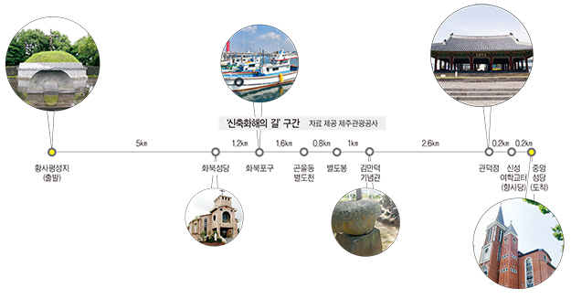 제주교구는 이에 앞서 2012년 9월 15일 첫 번째 순례길인 ‘김대건길’(12.6㎞)을 열었다. 이어 2013년 4월 20일 ‘하논성당길’(10.6㎞)을 개통하고 이듬해 2014년 6월 21일 ‘김기량길’(9.3㎞)을 연데 이어, 대정성지-모슬포제1훈련소터-모슬포성당에 이르는 ‘정난주길’(7㎞)을 2015년 11월 14일 개통해 교회와 세상, 세상과 세상 간 화해의 길을 넓혀왔다. 마지막 제6코스인 ‘이시돌길’(18.2㎞)도 올해 안에 열릴 예정이다.