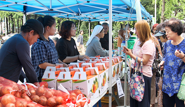 마산교구는 16일 오전 마산 양덕동주교좌성당에서 농민주일 기념미사를 봉헌하고 농산물 직거래 장터를 열었다.
