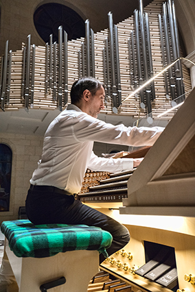 프랑스 파리 노트르담대성당 수석 오르가니스트 올리비에 라트리가 범어대성당 오르간을 연주하고 있다. 대구 범어본당 제공