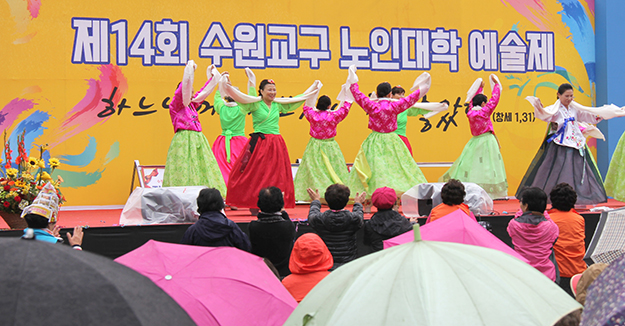 초대공연도 펼쳐졌다. 노인대학연합회는 가수 한혜진씨와 유지나씨를 초청, 트로트공연을 마련했다. 예술제 오프닝 무대는 경기소리그룹 ‘앵비’·타악그룹 ‘진명’의 공연으로 꾸며 흥을 돋우기도 했다.