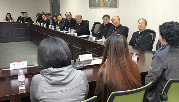 2017년 주교 현장체험에 나선 주교단이 11월 8일 경기도 안성 하나원에서 북한이탈주민들과 만나 이야기를 나누고 있다.