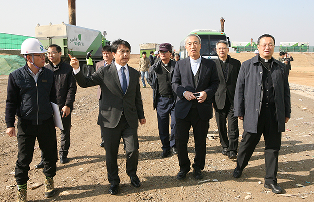 우선 넓이가 1618만㎡로 광활하다. 여의도의 약 6배, 축구장 2500개 넓이다. 버스에 탑승해 이동하며 매립지공사 시설과 환경을 둘러본 주교단은 이구동성으로 “쓰레기가 이렇게 깨끗하고 냄새도 거의 없이 처리되고 있다는 사실이 놀랍다”는 반응을 보였다.