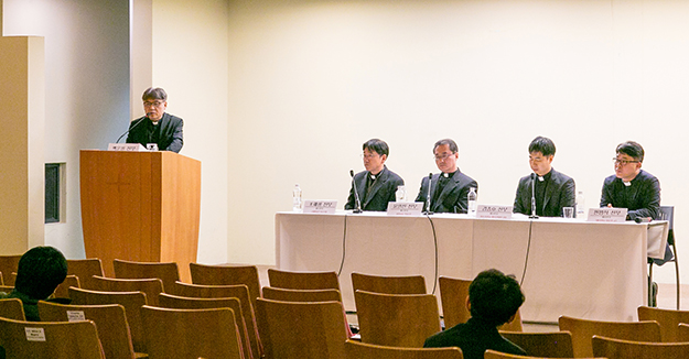 가톨릭대 사목연구소가 11월 11일 가톨릭대 신학대학 진리관 대강의실에서 연 학술심포지엄. 주제발표자들이 청중들의 질문에 답하고 있다.