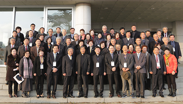 11월 24~25일 충북 음성 꽃동네 사랑의 영성원에서 열린 2017년 한국천주교평신도사도직단체협의회 추계 상임위원회에 참가한 전국 평(단)협 임원들이 기념사진을 찍고 있다.
