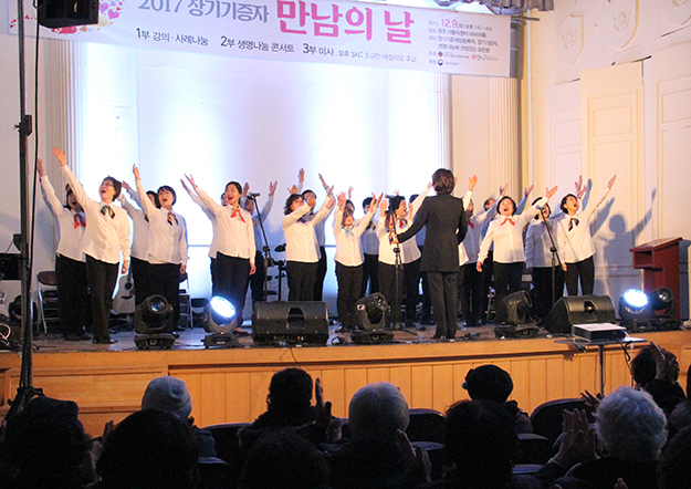 12월 9일 원주 가톨릭센터에서 열린 2017 장기기증자 만남의 날에서 ‘생명의 소리 합창단’이 공연을 하고 있다.