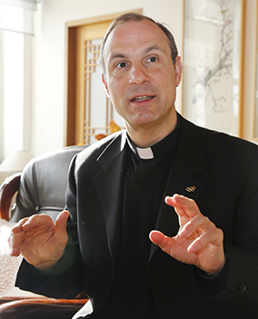 2월 11일 주한 교황청 대사관에서 진행한 본지와의 특별인터뷰에서 산체스 몬시뇰은 “교회는 스포츠와 스포츠가 갖는 가치를 존중한다”고 말한다. 사진 성슬기 기자