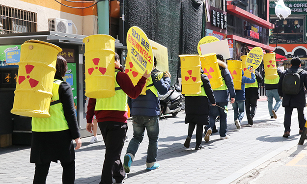 천주교·개신교·불교·원불교·천도교 등 5대 종단 환경단체들의 연합체 ‘종교환경회의’가 3월 22일 서울시 명동 일대에서 ‘3월 종교인 서울 탈핵순례길’ 행사를 진행하고 있다.