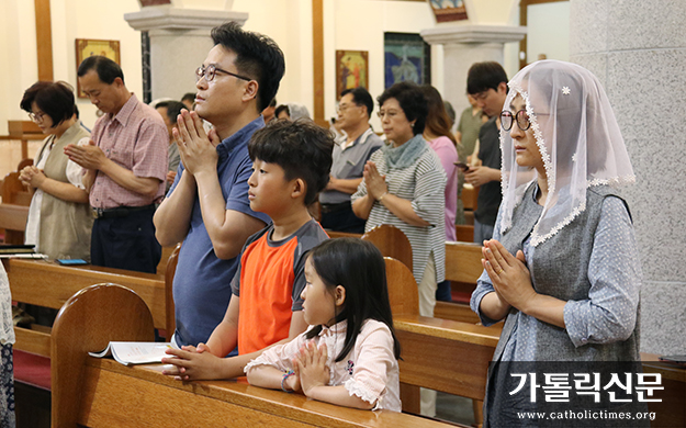 6월 17일 오후, 주일미사 봉헌을 위해 의정부교구 파주 참회와속죄의성당(주임 권찬길 신부)에 모인 신자들은 미사 시작 전 한마음 한뜻으로 민족의 화해와 일치를 위한 9일 기도를 바쳤다.