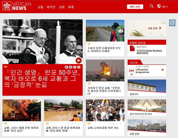 서울대교구 홍보위원회는 7월 27일 ‘바티칸 뉴스’가 한국어 서비스를 시작했다고 밝혔다. ‘바티칸 뉴스’는 교황이 주례하는 삼종기도와 일반알현, 성녀 마르타의 집 미사를 비롯해 교황의 활동을 가장 신속하게 전달하는 매체다. 또한 교황청 소식과 지역교회 소식도 전달한다. ‘바티칸 뉴스’ 한국어 서비스 시작으로 이제 한국 신자들도 그날 그날의 교황과 교황청, 세계교회 소식을 바로 확인할 수 있게 됐다.