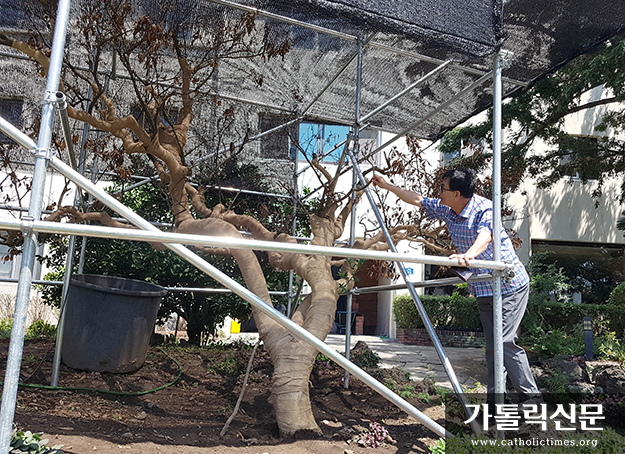 ‘에밀 타케 신부 기념사업추진위원회’ 오충윤(야고보·서귀포본당) 위원장은 “폭염과 가뭄으로 인해 많은 성지순례객들이 아끼는 밀감나무가 고사하고 있어 매우 안타깝다”며 “탱자 22개를 접목시켜 후계목을 만들고 있으니 참 다행이고 이 나무를 살리려면 교구민들의 기도가 꼭 필요하다”고 말했다.