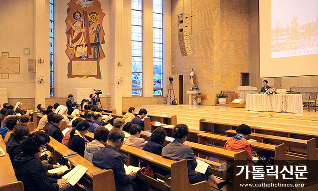 10월 6일 대전 대흥동주교좌성당에서 열린 대전교구 70주년 기념 심포지엄에서 김정환 신부가 발표하고 있다.