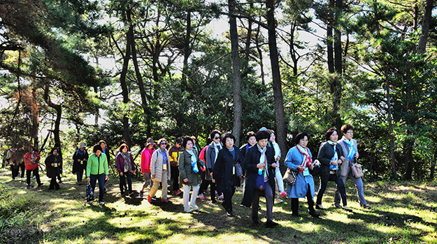 한국가톨릭여성단체협의회가 10월 23~24일 광주대교구 소록도성당에서 개최한 평신도 희년 기념 걷기대회 중 참가자들이 소록도 ‘치유의 길’을 걷고 있다. 한국가톨릭여성단체협의회 제공