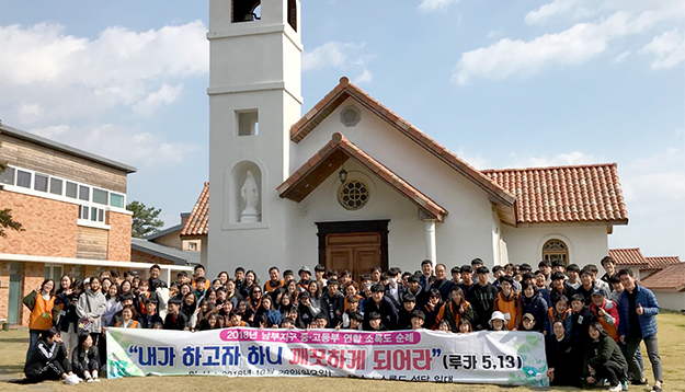 10월 28일 광주대교구 남부지구 중고등부 교리교사연합회가 마련한 소록도 순례 행사 중 참가자들이 소록도성당 앞에서 기념사진을 찍고 있다. 광주대교구 남부지구 중고등부 교리교사연합회 제공