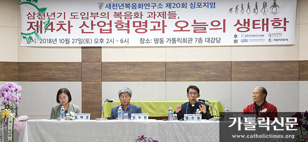 새천년복음화연구소(소장 조영동, 담당 조성풍 신부)가 10월 27일 서울 명동 가톨릭회관 7층 대강당에서 ‘삼천년기 도입부의 복음화 과제들, 제4차 산업혁명과 오늘의 생태학’을 주제로 제20회 심포지엄을 열었다.