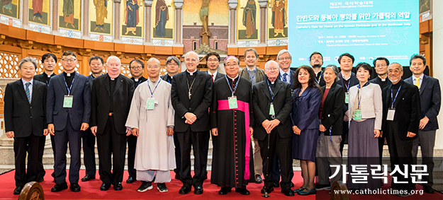 ‘한반도와 동북아 평화를 위한 가톨릭의 역할’을 모색하기 위한 가톨릭동북아평화연구소 제2회 국제학술대회가 11월 6일 의정부교구 파주 참회와속죄의성당에서 열렸다. 이번 학술대회는 가톨릭동북아평화연구소와 본사의 업무제휴 협약 체결 후 처음 개최된 행사로 가톨릭신문사와 의정부교구 민족화해위원회가 공동주최했다. 주한 교황대사 알프레드 슈에레브 대주교와 의정부교구장 이기헌 주교를 비롯한 관계자들이 단체사진을 찍고 있다.
