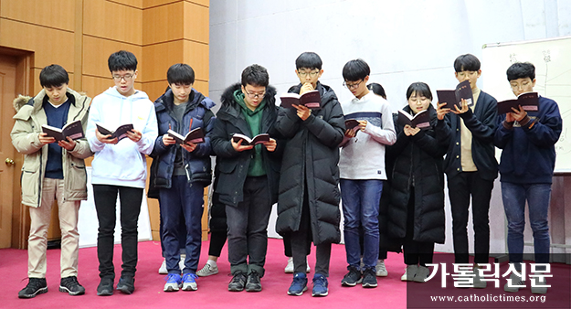 11월 24일 열린 대전 전민동본당 중고등부 연도대회에서 참가 학생들이 연도를 바치고 있다.