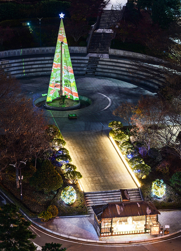 서강대학교 정문 알바트로스탑 광장에 평화통일의 염원을 담아 설치된 성탄 구유. 서강대학교 발전홍보팀 제공