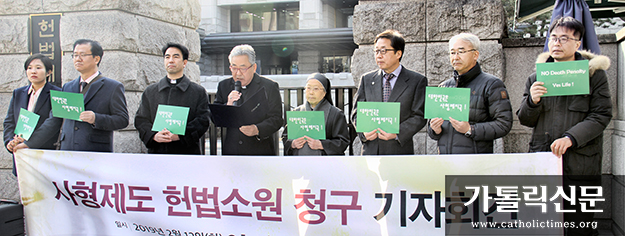 주교회의 정의평화위원회 사형제도폐지소위원회(위원장 배기현 주교, 이하 사폐소위)는 2월 12일 오후 3시 서울 재동 헌법재판소 정문 앞에서 기자회견을 열고 사형제도를 규정한 현행 법률에 대한 헌법소원심판 청구서를 헌법재판소에 제출했다.