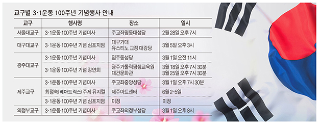 일제의 식민통치에 저항해 한민족의 자주와 독립을 외친 3·1운동 100주년을 맞아 각 교구별로 기념행사를 마련하고 있다.