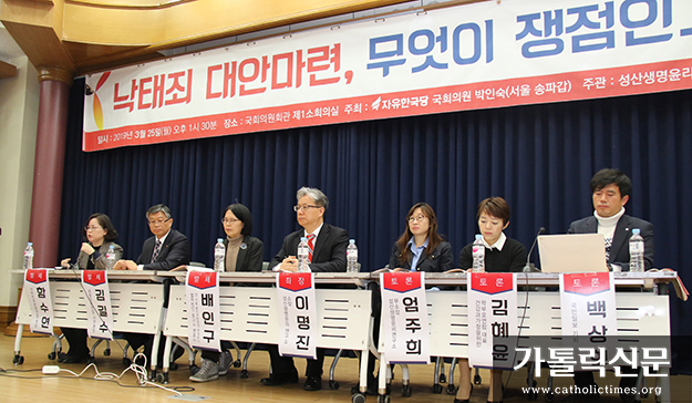 낙태죄 처벌 조항 위헌 여부 결정 이후의 방향을 모색하는 자리가 마련됐다. 자유한국당 박인숙 의원이 주최하고 성산생명윤리연구소와 생명운동연합이 주관한 토론회에서 참석자들은 ‘생명’과 ‘책임’이 중요하다고 입을 모았다. 토론회는 3월 25일 오후 1시30분 서울 여의도동 국회의원회관 제1소회의실에서 열렸다.