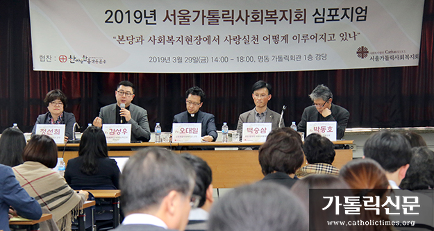 가톨릭 사랑실천 현장에서도 문제는 ‘고령화’라는 지적이 나왔다. 3월 29일 오후 2시 서울 명동 가톨릭회관 1층 강당에서 진행된 ‘2019년 서울가톨릭사회복지회 심포지엄’에서다. ‘본당과 사회복지현장에서 사랑실천 어떻게 이루어지고 있나’를 주제로 진행된 이번 심포지엄에서 참석자들은 “사랑실천을 이어갈 청년 인력을 양성해야 한다”고 말했다.