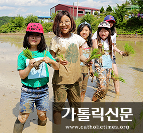 2017년 모내기 체험에 참가한 어린이들. 가톨릭신문 자료사진