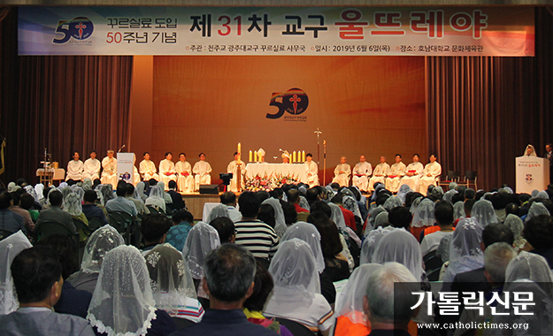광주대교구 꾸르실료는 6월 6일 호남대 문화체육관에서 교구장 김희중 대주교가 참석한 가운데 광주대교구 꾸르실료 도입 50주년 기념 제31차 교구 울뜨레야를 개최했다.