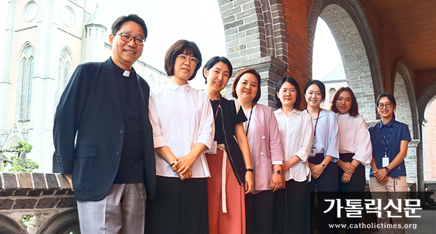 6월 27일 서울대교구 역사관에서 원종현 신부와 서울대교구 순교자현양위원회 직원, 한국천주교순교자박물관·서소문성지역사박물관 학예사들이 서울대교구 역사관 개관 1주년 기념 기자간담회를 마치고 기념사진을 찍고 있다.