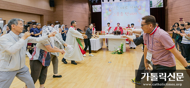 7월 1~3일 대구가톨릭대학교 효성캠퍼스에서 열린 제18차 소공동체 전국모임 파견미사 중 참가자들이 선교 관련 노래와 춤을 선보이고 있다.