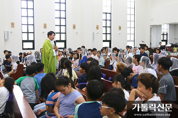 지난 7월 6일 열린 수원교구 배곧본당(주임 김정환 신부)의 어린이 미사. 입당성가가 끝난 뒤 성호경을 그으며 신부님이 ‘성부와 성자와 성령의 이름으로’를 영어로 말하자, 성전에 모인 청소년과 어린이들이 한목소리로 “Amen”이라 답한다. 한 달에 한 번, 매월 첫째 주 토요일에 열리는 ‘청소년을 위한 영어미사’는 강론과 성가를 제외한 모든 내용이 영어로 진행된다. 이 미사는 ‘교육혁신도시’인 배곧 신도시의 특색에 맞는 신앙프로그램을 고민했던 김정환 신부의 아이디어에서 나왔다.