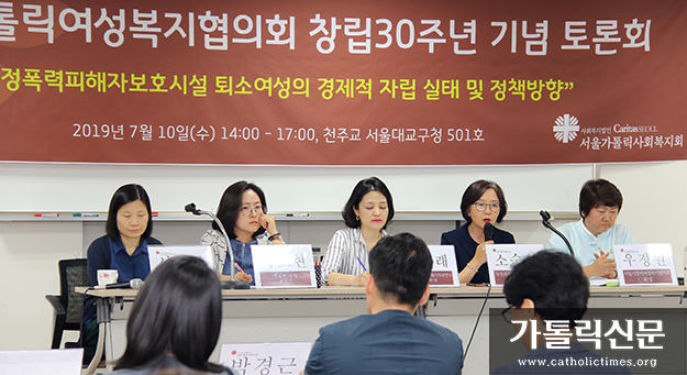 7월 10일 오후 2시 서울 명동 서울대교구청 501호에서 열린 서울가톨릭여성복지협의회 창립 30주년 기념 토론회에서 이 같은 의견이 제시됐다. ‘가정폭력피해자보호시설 퇴소 여성의 경제적 자립 실태 및 정책방향’을 주제로 마련된 이번 토론회에서 참석자들은 보호시설을 퇴소한 가정폭력피해 여성들의 자립 실태를 파악하고 이에 대한 방안을 모색했다. 토론회는 서울가톨릭사회복지회(이사장 유경촌 주교)가 주최, 서울가톨릭여성복지협의회(회장 우정원)가 주관했다.