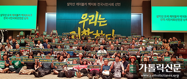 이달 말 최종 결정을 앞두고 있는 설악산 오색케이블카 사업에 대해 강한 반대의 뜻을 천명하고자 전국의 다양한 시민단체가 한 자리에 모였다.
