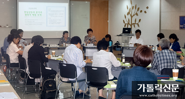 한국여성평화연구원 주관으로 8월 16일 오후 서울 영등포동 여성미래센터 지하 소통홀에서 열린 ‘한일 갈등의 분석과 평화적 해법 모색’ 긴급토론회가 진행되고 있다.