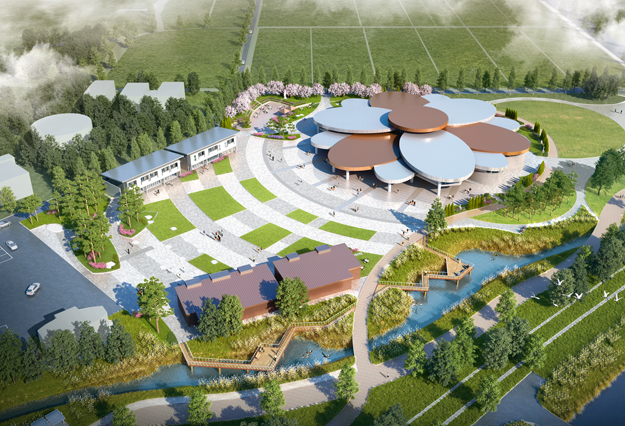 여기에는 회랑, 대강당, 전시관을 갖춘 복합예술관(4390㎡)을 중심으로 9038㎡ 규모의 광장 그리고 공연장과 전시 공간을 포함한 조각 공원 등의 시설이 들어선다.