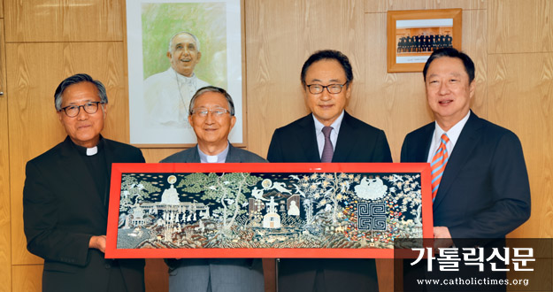 주교회의(의장 김희중 대주교)는 9월 5일 서울 중곡동 한국천주교중앙협의회에서 교황 방한 124위 시복 기념 작품 제작 추진위원회(위원장 사공일, 지도 최창화 몬시뇰, 실무 최기복 신부, 이하 추진위원회)가 제작한 나전칠화 ‘일어나 비추어라’ 주교회의 기증식을 열었다.