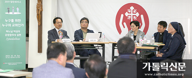 서울대교구 평신도사도직단체협의회(회장 손병선) 산하 평신도사도직연구소(소장 이창훈)는 10월 19일 서울 명동 가톨릭회관 3층 대강당에서 ‘누구를 위한 누구의 교회인가 - 하느님 백성의 공동합의성(synodalitas) 실현’을 주제로 세미나를 열었다. 이날 세미나는 하느님 백성의 구성원들인 사제와 수도자, 평신도가 함께 교회의 길, 구원의 길을 가면서 세상에 그리스도를 드러내는 성사가 되는 방법과 그를 위한 노력을 모색하는 자리였다.