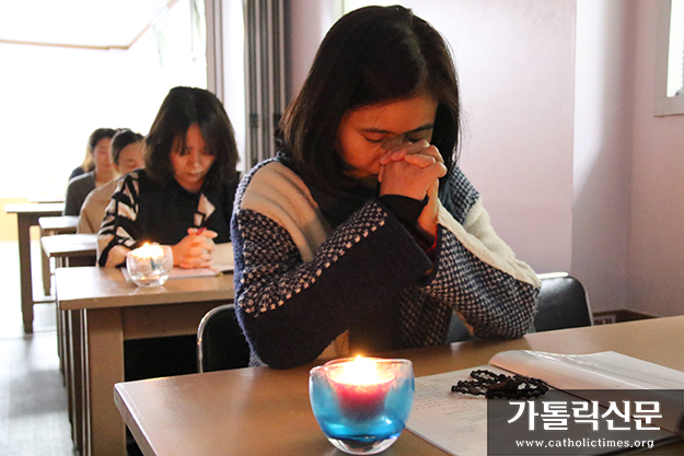 10월 20일 오후 8시10분, 수원 정자동주교좌성당 지하 1층 한 교리실에서 잔잔한 음악이 흘러나온다. 모두 집으로 돌아가고 어둠만이 내려앉은 일요일 저녁, 흔들리는 작은 촛불들 사이로 엄마들이 나란히 앉아 있다. 모두 열여덟 명.