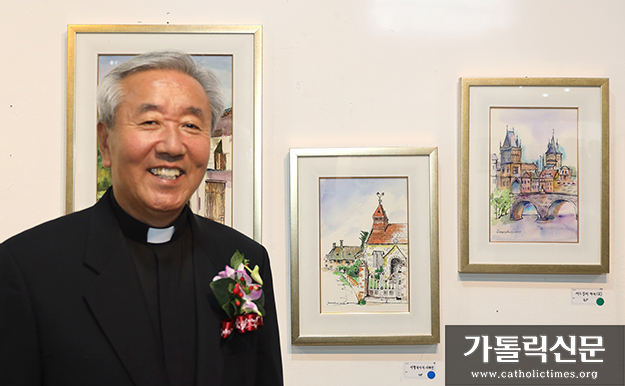 사제로서, 교수로서, 학자로서 많은 업적을 이룬 그가 수채화에 도전하게 된 계기는 의외로 소박하다. 사목 일선에서 물러난 후 지난해 초, 인천가톨릭대 조형예술대학 평생교육원에서 수채화 수업을 받기 시작한 것. 붓을 잡아본 것은 소신학교 시절이 마지막이었지만, 어릴 적에는 그림에 소질이 있었기 때문에 실력은 일취월장했다. 매일 쉬지 않고 2~3시간씩 열심히 그림을 그린 것도 한몫 했다. 이에 그림을 지도한 이향미 선생이 “그냥 두기 아까우니 전시회를 열라”고 강권했다.