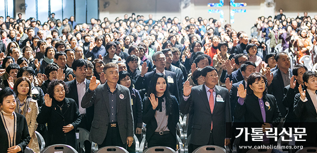 11월 9일 대구가톨릭대학교 유스티노 교정 성 김대건 기념관에서 열린 대구대교구 선교대회에 참가한 교구민들이 ‘선교선언문’을 함께 외치고 있다.