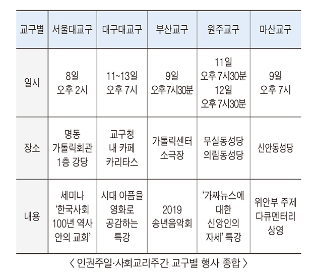 제38회 인권 주일(12월 8일 대림 제2주일)과 제9회 사회교리 주간(12월 8~14일)을 맞아 다채로운 행사와 프로그램이 열린다.