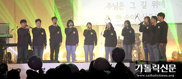 11월 24일 인천 송림동 보니파시오 대강당에서 열린 ‘청년신앙축제’에서 특별상 수상 팀인 일신동본당 ‘새 날’이 노래 ‘주님의 계절’을 부르고 있다.
