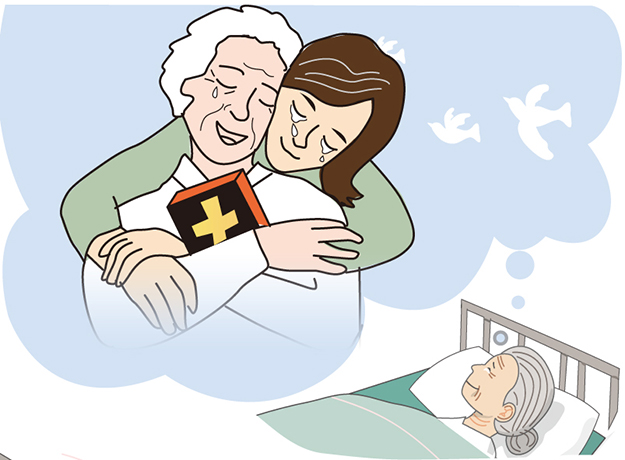 “돌아오는 길에, 선생님은 저에게 전화를 주셨어요. 지금 병실 분위기는 너무나 편안하다고. 그래서 저는 선생님에게 가족들 분위기가 너무 좋다고 말했더니, 그 선생님은 아니라며, 모두가 다 그렇게 살지 않느냐고 말하더라고요. 그리고 선생님은 제게 말하기를, 자신의 할머니는 세례만 안 받았지, 한평생 신앙인 이상의 삶을 사셨다고 해요. 그래서 서서히 임종 준비를 하면서 할머니가 세례를 받도록 해 드린 거라고. 그런데 그 오랜 꿈이 이루어졌다고 가족들 모두가 행복해 한다고 말하더군요. 그러면서 신부님들에게 감사하다는 인사를 전한다고 말했어요.”