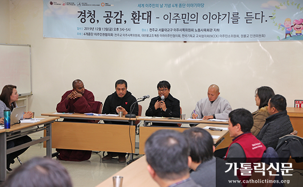 ‘경청, 공감, 환대–이주민의 이야기를 듣다’를 주제로 12월 13일 서울대교구 이주사목위원회 노동사목회관 지하에서 열린 이날 행사는 천주교, 개신교, 불교, 원불교 등 4개 종단의 이주·인권협의회가 주최했다. 주최 측으로 함께한 단체들은 서울대교구 이주사목위원회와 대한불교조계종 마하이주민협의회, 한국기독교교회협의회 이주민소위원회, 원불교 인권위원회다.