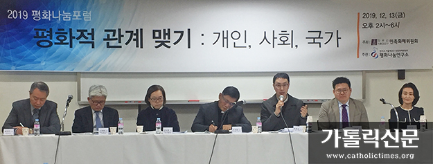 서울대교구 민족화해위원회(위원장 정세덕 신부, 이하 민화위)가 주최하고 민화위 부설 평화a나눔연구소(소장 최진우 교수)가 주관하는 ‘2019 평화나눔포럼’이 ‘평화적 관계 맺기: 개인, 사회, 국가’를 주제로 12월 13일 오후 2시 서울대교구청 501호에서 열렸다. 포럼은 서울대교구장 염수정 추기경의 기조연설과 제1회의, 제2회의로 구성됐다.