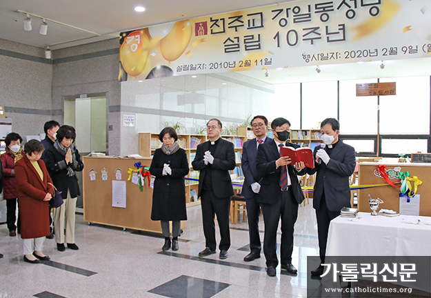 2월 11일 본당 설립 10주년을 맞은 서울 강일동본당(주임 박근태 신부)은 2월 9일 오전 11시 본당 설립 10주년 감사 미사를 봉헌하고, 미사 후 성당 내 마련된 ‘루르드의 작은도서관’ 개관식을 진행했다.