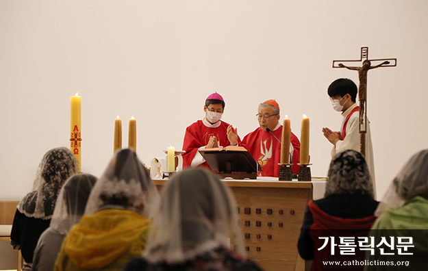 서울대교구 순교자현양위원회(위원장 정순택 주교)는 5월 29일 서울 서소문성지역사박물관 성 정하상 기념경당에서 교구장 염수정 추기경 주례로 미사를 봉헌했다. 순교자현양위원회는 코로나바이러스감염증-19(코로나19) 예방을 위해 정부의 방역지침을 준수하며 이날 미사를 봉헌했다. 신자들의 분산을 위해 같은 시간 서소문성지역사박물관 내 명례방에서도 부위원장 원종현 신부 주례로 미사가 준비됐다.