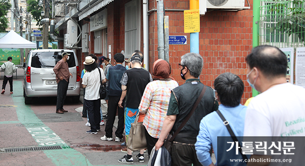 6월12일 서울 영등포 요셉의원을 방문한 환자들이 진료를 받기 위해 기다리고 있다.