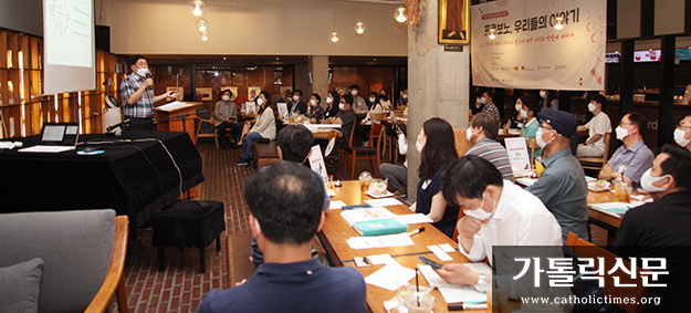 7월 8일 서울 정동 프란치스코 교육회관 산 다미아노 카페에서 열린 ‘2020 제3차 프로보노 포럼’에서 정창래 SK C&C 수석이 자신의 프로보노 경험담을 발표하고 있다.